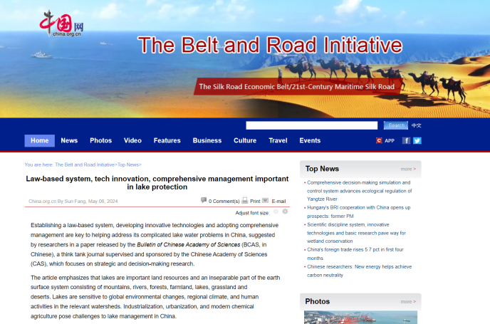 • 2024-05-20Law-based System, Tech Innovation, Comprehensive Management Important in Lake Protection